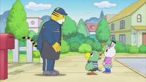 Shimajiro sees his father apologizing to an angry Mrs. Mei while out on his mail route. He doesn't want to see her yelling at his dad, so he runs away.