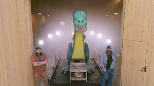A couple of kids give Jimmy and his crew of merry makers a Jurassic task: build a 12-foot-tall wooden dinosaur that spits candy tacos.
