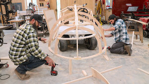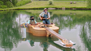 Can five bearded makers build a guitar-shaped boat that holds two passengers, plays music and actually floats? Only one way to find out, sailor.