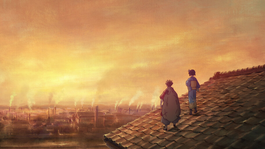 In an alternate past, an unlikely duo team up to look for a missing catalog that could bring electricity to the smoke-filled streets of Kyoto.