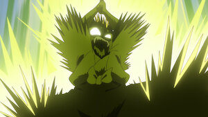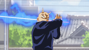 In Nagoya, Yaiba and his group encounter the powerful Mr. Bat, who wants the Raijinken. During the confrontation, Mr. Bat bites Musashi's neck.