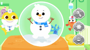 Baby Shark helps jolly Santa after a little tumble, then cheers up Snowman with his icy problem and takes care of sweet Gingerbread's icky boo-boo!