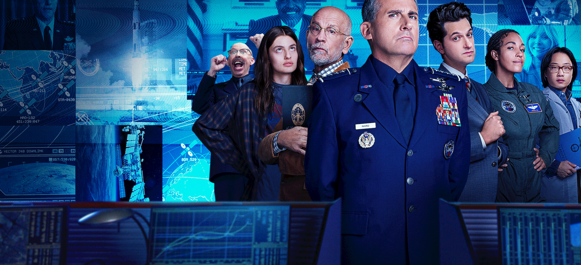 Armed with weapons that are less than intimidating, Space Force soldiers — led by General Naird — play war games with their Air Force rivals.