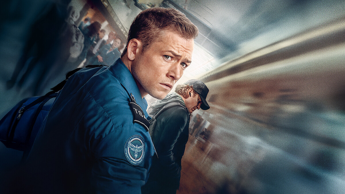 Get ready for the most stressful airport trip of your life. Ethan Kopek (Taron Egerton) spends his days as an unmotivated TSA agent at Los Angeles’ LAX airport. One good thing he’s got going for him? He and girlfriend Nora (Sofia Carson) are expecting their first child. So when Ethan arrives to work on Christmas Eve, he convinces his supervisor (Dean Norris) to put him on bag monitoring duty — angling for a promotion now that they’ve got a baby on the way. But soon after, an earbud comes through in a screening bin and a mysterious text instructs Ethan to insert it. Suddenly, he’s talking to a lethal mercenary known only as “Traveler” (Jason Bateman), who instructs Ethan to let a dangerous carry-on suitcase pass through. And if he doesn’t? Nora will be killed.