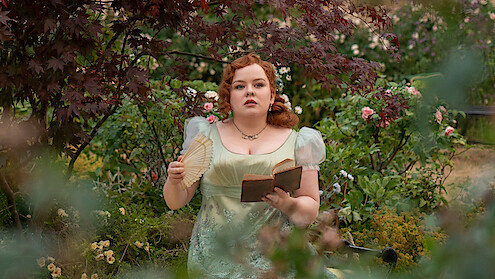 As the footage above reveals, the clock is ticking for Penelope Featherington (Nicola Coughlan) at the beginning of Bridgerton Season 3, Episode 5. “There’s so much still to come,” Coughlan tells Tudum.