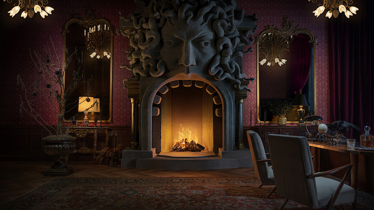 For once, being called into the principal’s office is a good thing as you settle in by the beautifully bleak fire of Principal Weems’s (Gwendoline Christie) office at Nevermore Academy. Just make sure not to get too mesmerized by the flame and watch those dark corners. You never know if a creature — or Thing — lurks in the shadows.