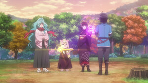 The demiplane residents hold a feast to celebrate the founding of Makoto’s trading company. Later, Tomoe and Mio sense something has befallen Makoto.
