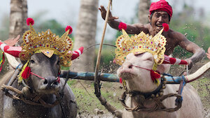 水牛犁田大賽是峇里島珍布拉那縣特有的競技,本質是直線競速比賽,但卻有著濃濃的在地風格:選手的座駕是水牛拉著的犁,賽道則是蓄滿水的稻田。