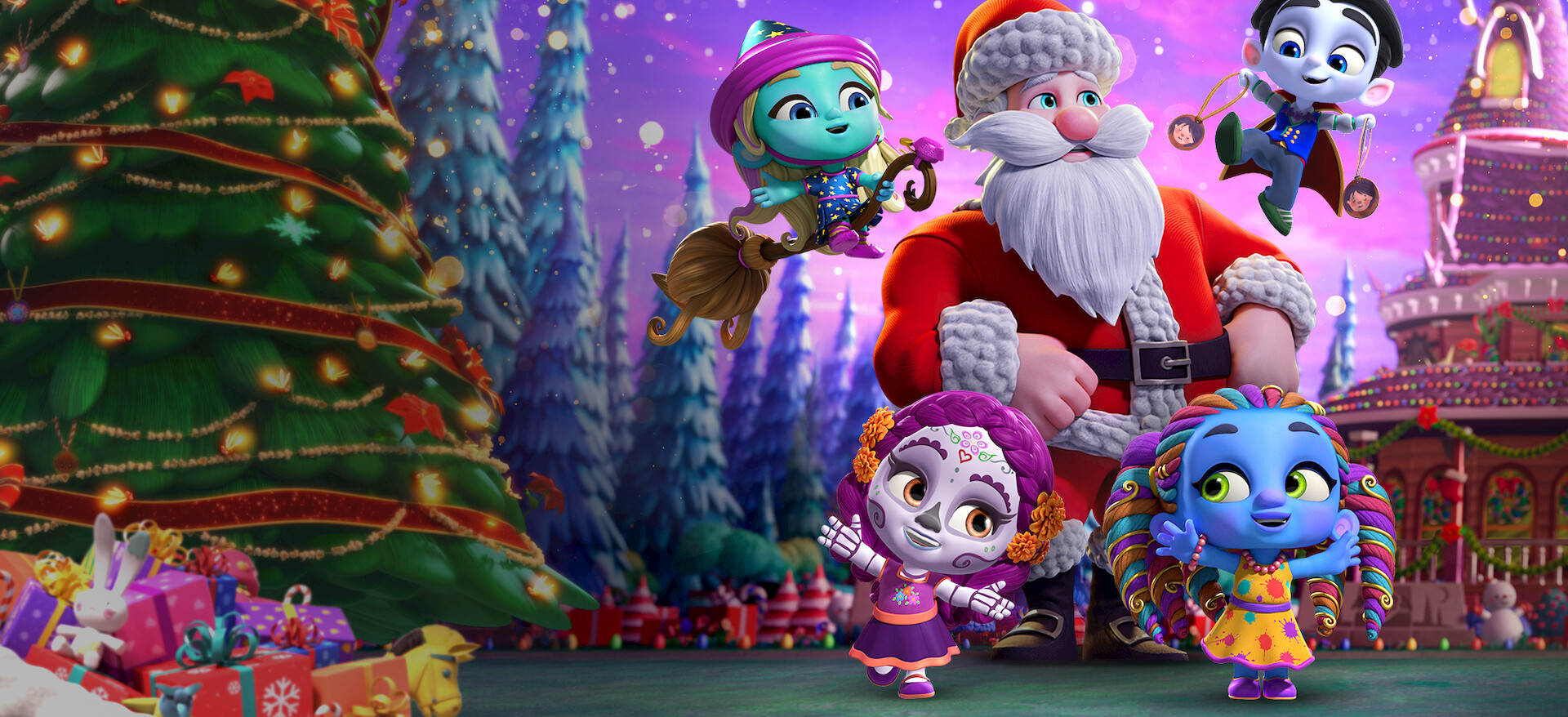 Es Nochebuena en Los Pinos, y los Supermonstruos forman equipo para decorar los salones, encontrar a los renos desaparecidos de Santa ¡y salvar las fiestas!