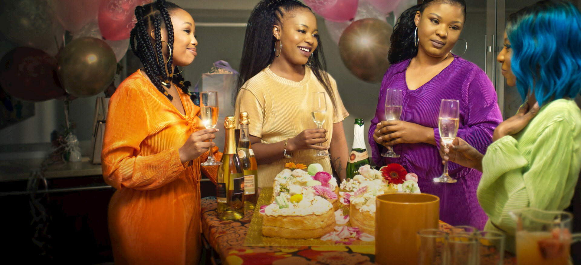 Elenco: Amogelang Chidi, Bahumi Madisakwane y Gabisile Tshabalala