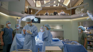 Ji-sang wows his coworkers with his surgical skills. The new director, Jae-wook, seems pleased with Ji-sang’s reaction to seeing a patient’s blood.
