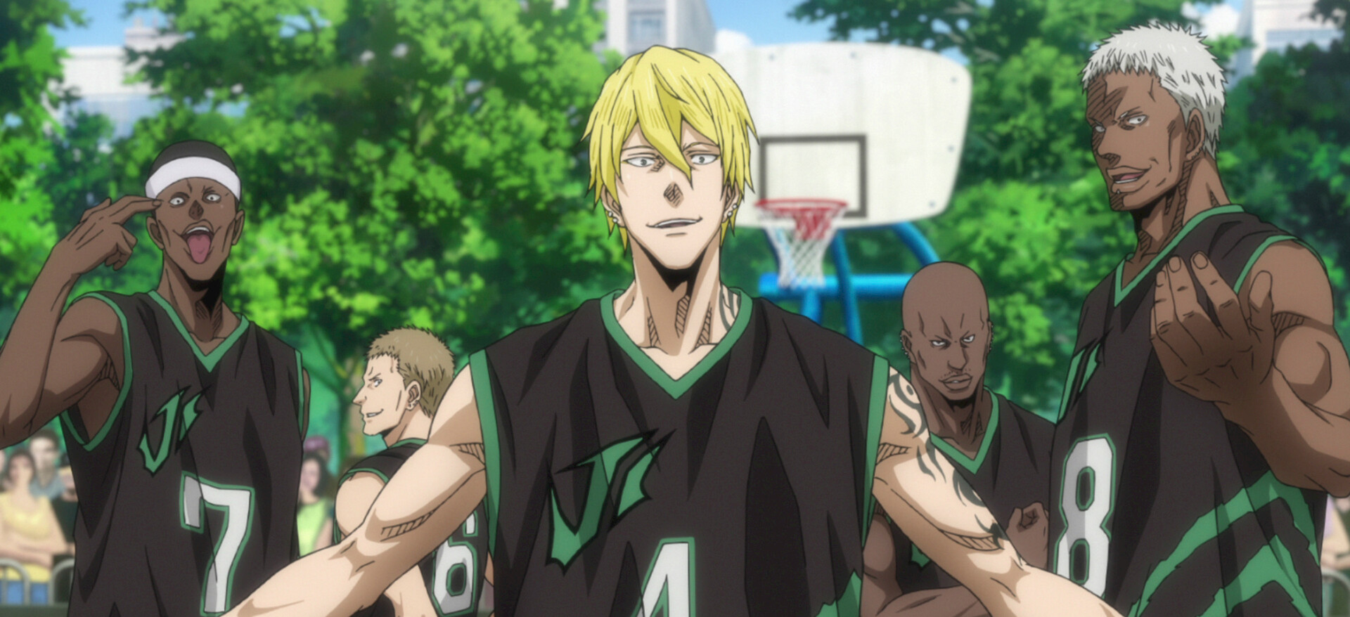 مثير للحماسة وحماسي ودراما وأحداث سريعة الوتيرة وكرة السلة وياباني وشونين ومرحلة الدراسة الثانوية وفيلم أنيمي وعمل للمراهقينالصوت